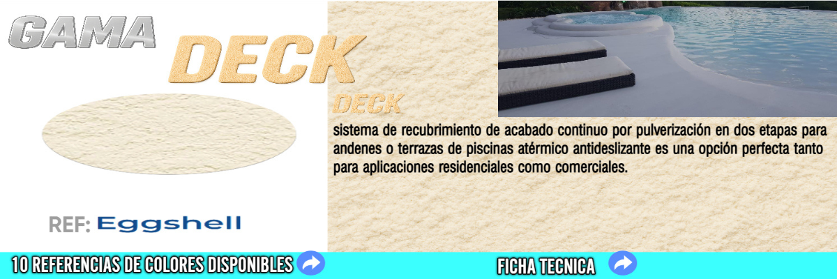 Adicionalmente, contamos con la Gama Deck, ideal para exteriores, andenes o terrazas de piscinas con acabado continuo en zonas secas o con humedad constante.